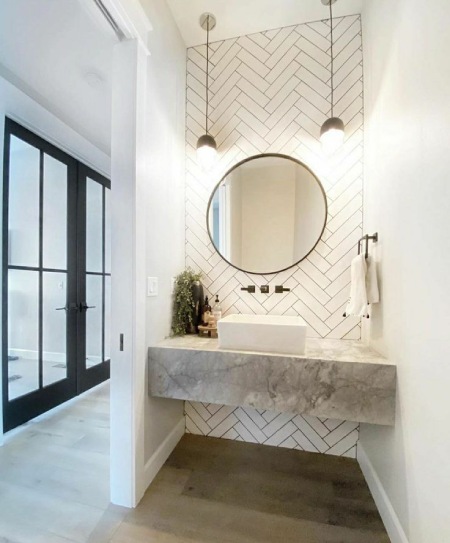 دکوراسیون و چیدمان روشویی سرامیکی با کاسه روکار