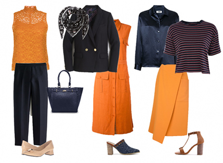 مطمئنا رنگ سرمه ای تنها با رنگ های خنثی ست نخواهد شد، بلکه شما می توانید آن را با رنگ های دیگری مانند نارنجی نیز ست کنید.