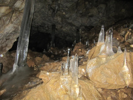 دخمه اول: پوشیده از یخ دائمی، همراه با دریاچهای یخزده و آبشاری یخی که از چکههای دیواره شکل گرفته است.